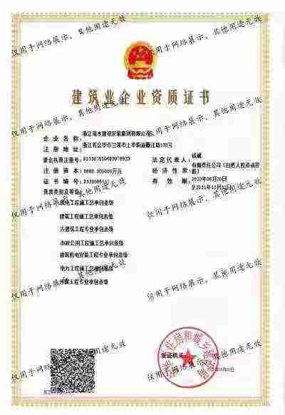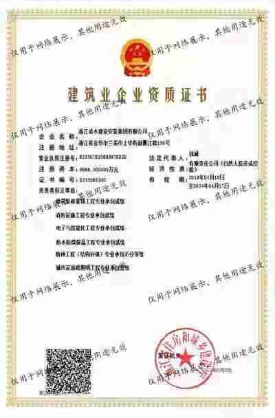 浙江清水建設(shè)安裝集團(tuán)有限公司成立于2013年,注冊資金6688萬元。集團(tuán)具有消防設(shè)施工程專業(yè)承包壹級(jí)、城市與道路照明專業(yè)承包壹級(jí)、電子與智能化專業(yè)承包壹級(jí)、建筑裝飾裝修專業(yè)承包貳級(jí)、防水防腐保溫專業(yè)承包貳級(jí)、市政工程施工總承包貳級(jí)、機(jī)電工程施工總承包貳級(jí)、建筑工程施工總承包貳級(jí)、電力工程施工總承包貳級(jí)、機(jī)電工程專業(yè)承包貳級(jí)、環(huán)保工程專業(yè)承包貳級(jí)、古建筑工程專業(yè)承包貳級(jí)、特種工程結(jié)構(gòu)補(bǔ)強(qiáng)專業(yè)承包、建筑施工勞務(wù)作業(yè)專業(yè)承包(憑建筑業(yè)企業(yè)資質(zhì)證書經(jīng)營